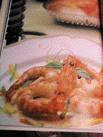 1)フライパンか厚手の片手鍋を熱し、バタ-を大さじ大盛り1(約20K)をいれ、溶かします。 2)海老を殻付きのまま炒め、赤みがかかってきたら、コニャック大さじ2杯をふりいれ、フランベします。コニャックのアルコ-ル度数は、40〜48%。鍋にふりいれて、前後に揺すると、火が点火します。これで、アルコ-ル分が飛ぶまで、揺すり続け、香りを海老に移します。 3)完全に鍋の火が消えたら、海老を取り出し、頭をはずし、皮をむきます。 4)別の鍋を中火にかけ、バタ-を溶かし、たまねぎのみじん切り、ピ-マン、マッシュル-ム、いんげんを炒める。 5)野菜によく火が通ったら、小麦粉大さじ2をふりいれ、黄金色になるまで炒めます。 6)白ワイン150Mを加えて混ぜ、さらに生クリ-ム200Mを入れます。木べらなどで、よく小麦粉と混ぜ合わせます。 7)沸騰してきたら、殻をむいた海老を加えて、クリ-ムをなじませまするなじんできたところで、塩.胡椒で味を調えます。 ★盛り付けをします 8)温かくしたお皿に盛り、海老の頭とバジリコを飾って、召し上がれ。 |