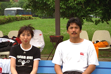 5/16小山田 淳 CTB 東芝府中 174cm 86キロ24才 けがでベンチにいたところひとこえかけて強引に撮ってしまった。足を冷やしていました